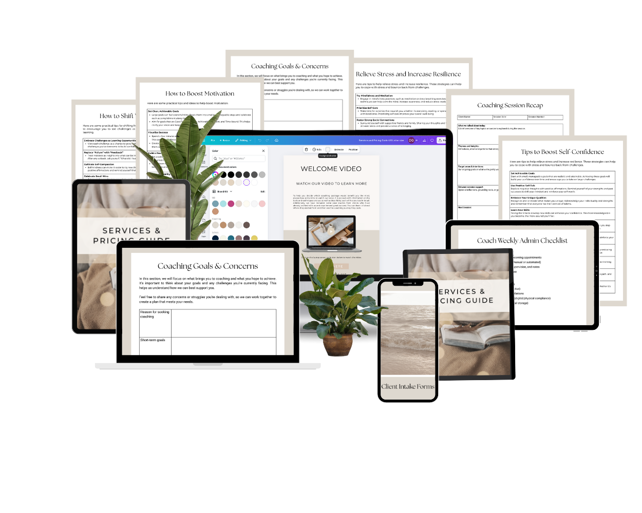 Systems, tools, and templates designed to professionalize your coaching delivery with less friction, greater confidence, and pricing that reflects your value.
